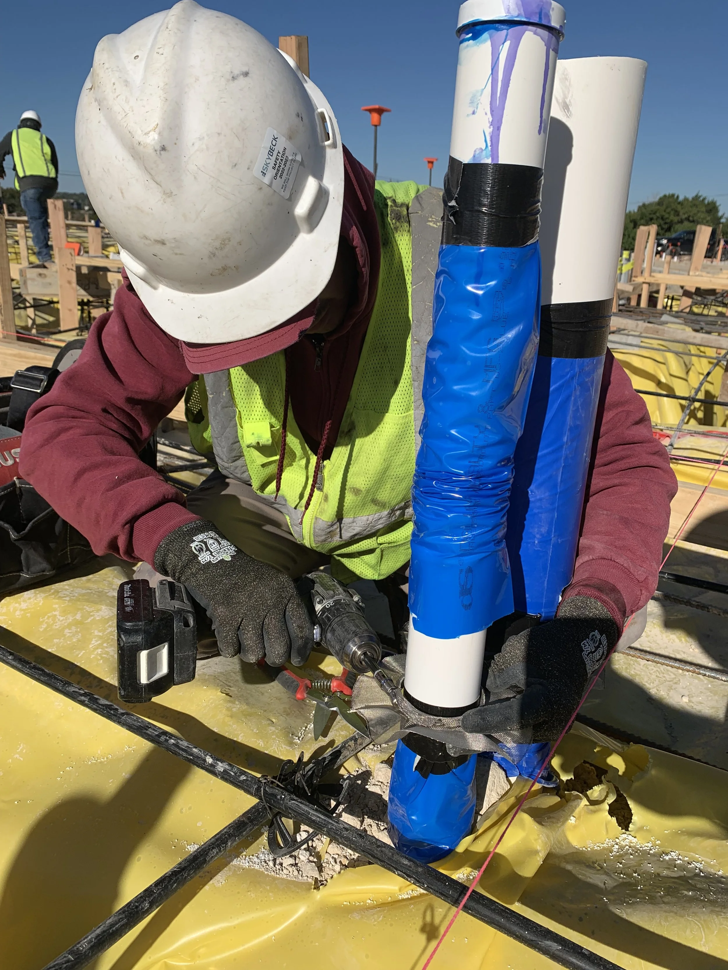 Image 1—A Termistop is being put into place and the clamp tightened to hold it in place during the concrete pour.