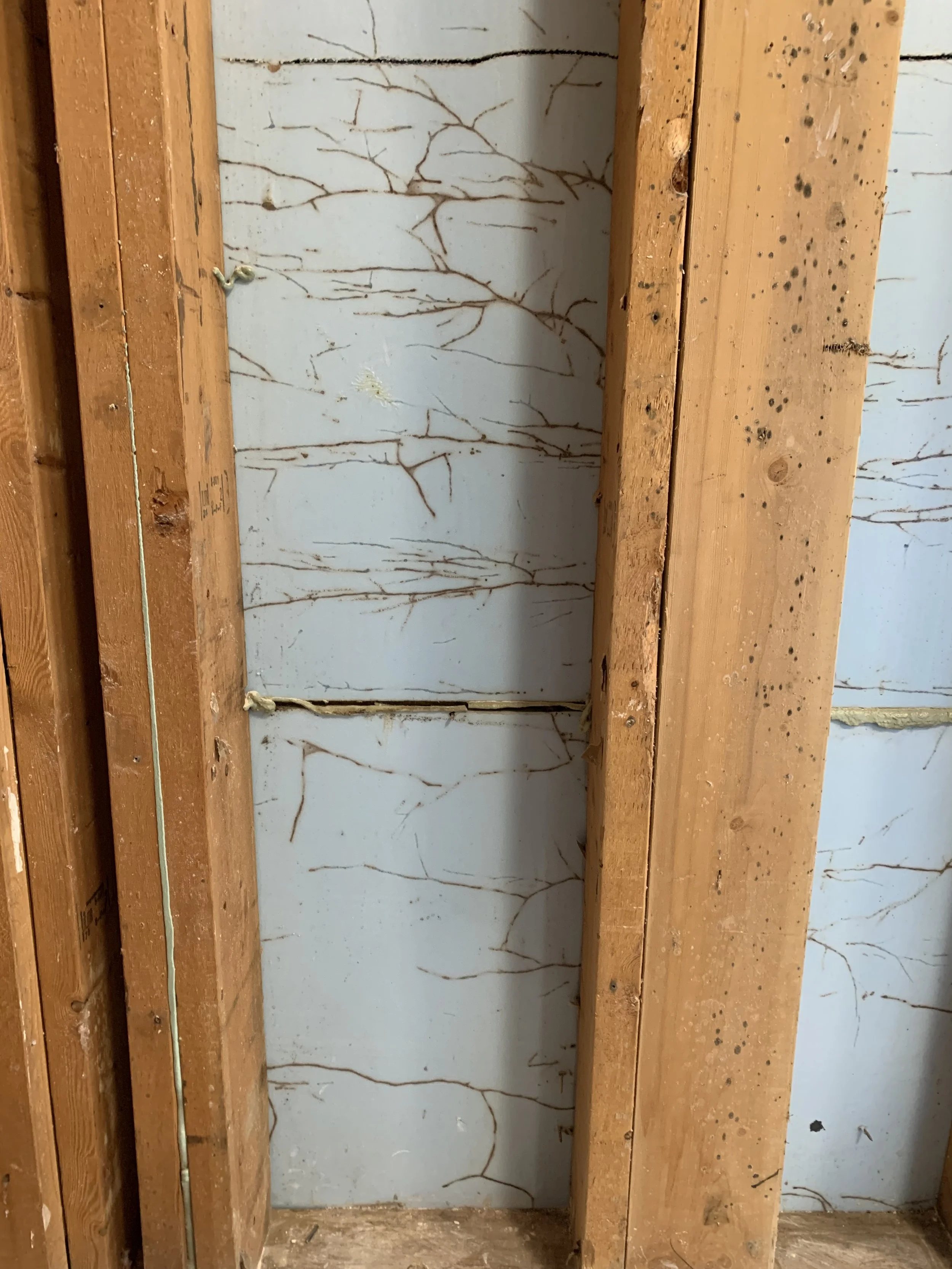 Photo of 3-year-old slab on grade home with spray foam insulation Formosan termite damage that had been “treated” with a borate based product.